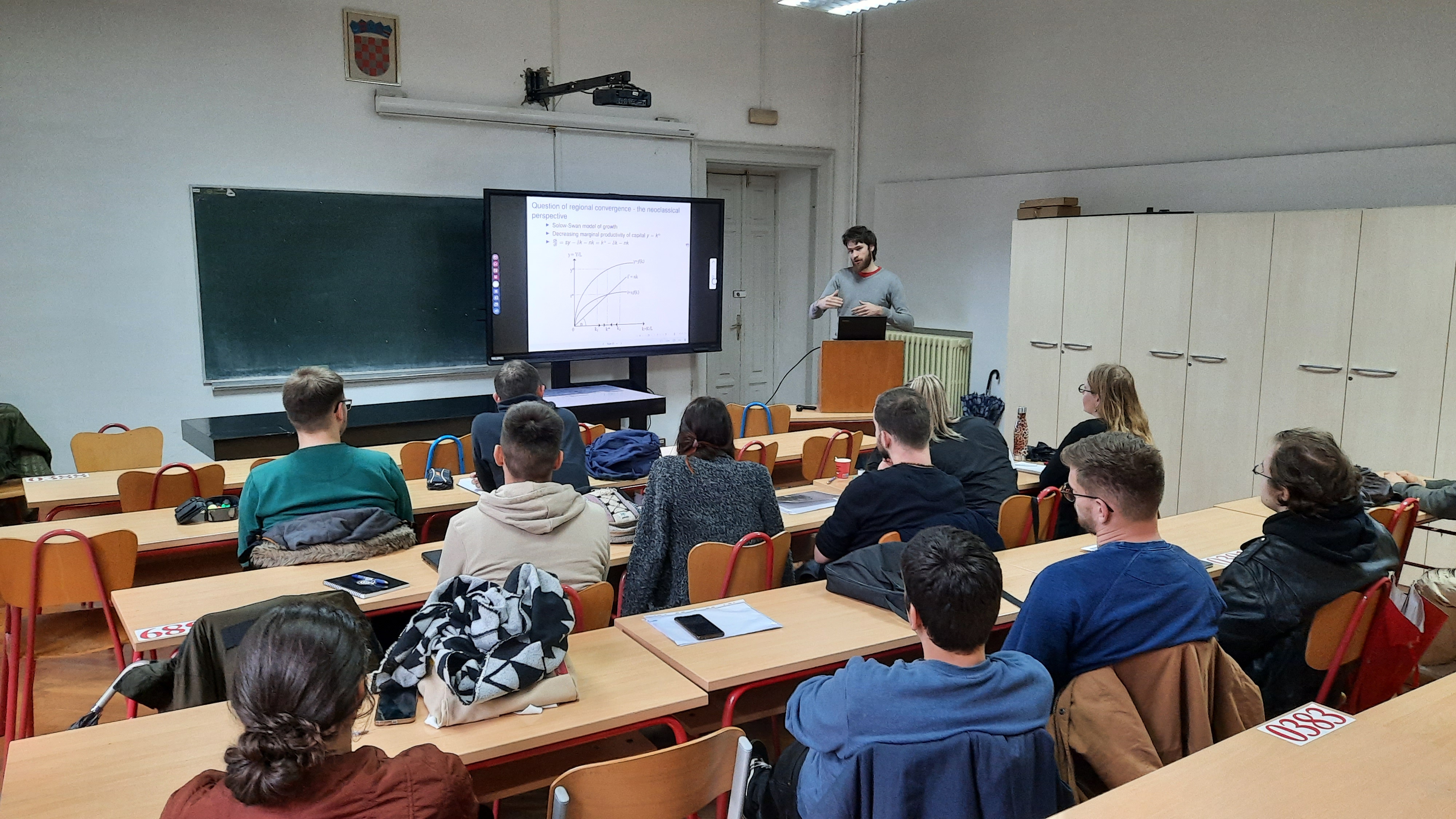 Doktorand Klemen Knez sa Sveučilišta u Ljubljani, koji u CKPIS-u boravi na Erasmus praksi, održao je 14. ožujka 2023. studentima povijesti predavanje Endogenous and political drivers of uneven development in SFRY.
