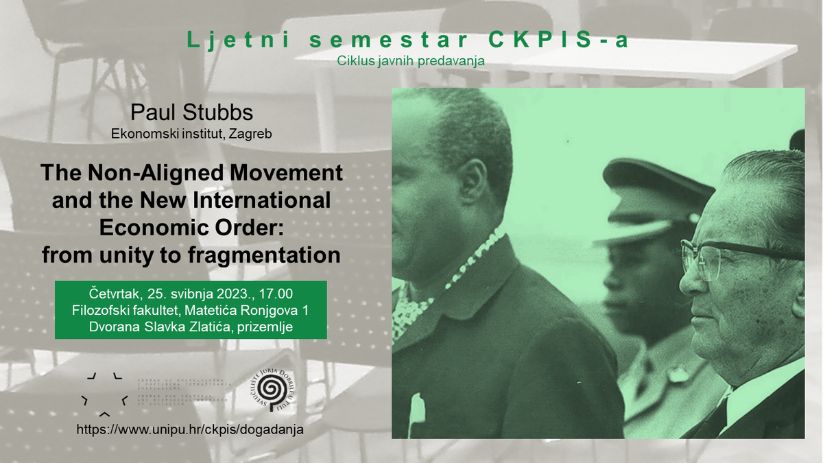 Novi gost ciklusa javnih predavanja Ljetni semestar CKPIS-a je sociolog Paul Stubbs s Ekonomskog instituta u Zagrebu. Predavanje pod naslovom The Non-Aligned Movement and the New International Economic Order: from unity to fragmentation (Pokret nesvrstanih i novi međunarodni ekonomski poredak: od jedinstva do razlomljenosti) održat će u četvrtak, 25. svibnja 2023., u 17.00 sati u Dvorani Slavka Zlatića, u prizemlju Filozofskog fakulteta u Puli, Matetića Ronjgova 1.