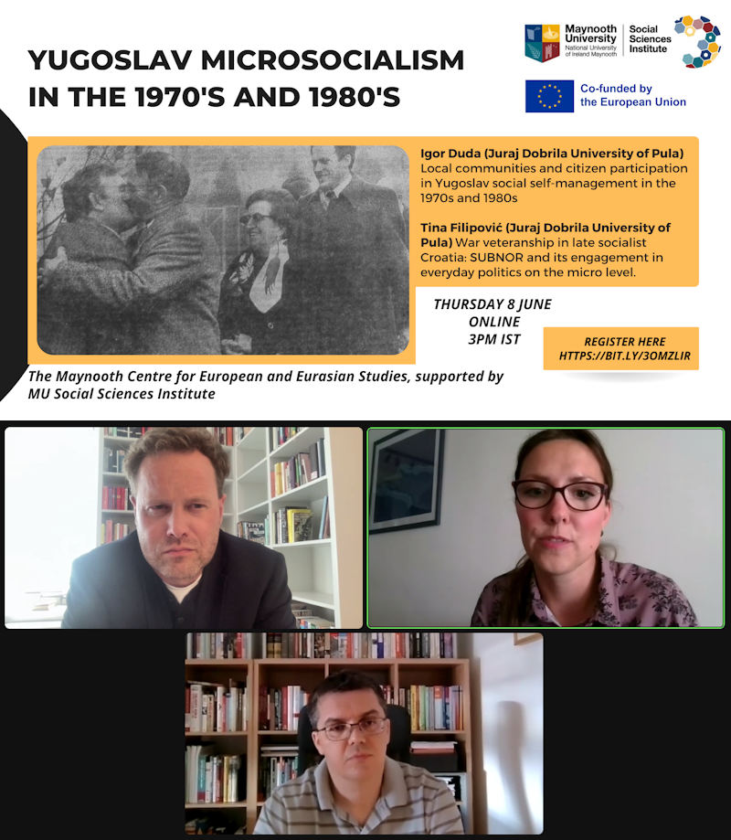 U organizaciji Sveučilišta Maynooth iz Irske (The Maynooth Centre for European and Eurasian Studies, Jean Monnet Centre of Excellence, MU Social Sciences Institute) 8. lipnja 2023. održana je online tribina pod naslovom Yugoslav microsocialism in the 1970s and 1980s (video). S polusatnim izlaganjima nastupili su Igor Duda (Local communities and citizen participation in Yugoslav social self-management in the 1970s and 1980s) i Tina Filipović (War veteranship in late socialist Croatia: SUBNOR and its engagement in everyday politics on the micro level), a domaćin tribine i moderator bio je John Paul Newman.