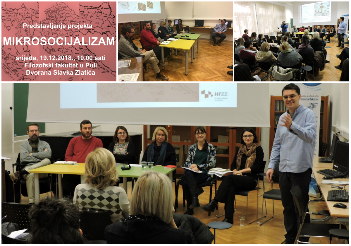 U srijedu, 19. prosinca 2018., u 10 sati u Dvorani Slavka Zlatića na Filozofskom fakultetu u Puli održano je predstavljanje istraživačkog projekta Mikrostrukture jugoslavenskoga socijalizma: Hrvatska 1970-1990. (Mikrosocijalizam). Rad na projektu upravo je započeo, a do studenog 2022. financirat će ga Hrvatska zaklada za znanost. Poslije pozdrava dekanice Filozofskog fakulteta Klare Buršić-Matijašić, projekt su predstavili voditelj Igor Duda te suradnici Chiara Bonfiglioli, Anita Buhin, Tina Filipović, Magdalena Najbar-Agičić, Christian Axboe Nielsen i Saša Vejzagić. Više o događaju na stranici Projekt u medijima.