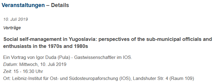 Suradnja s Leibnizovim institutom za studije istočne i jugoistočne Europe (IOS) u Regensburgu temelji se na ugovoru o suradnji koji su potpisali IOS i CKPIS Sveučilišta Jurja Dobrile u Puli te na konzultantskoj ulozi koju na projektu Mikrosocijalizam ima prof. dr. sc. Ulf Brunnbauer. U srpnju 2019. izv. prof. dr. sc. Igor Duda održao je predavanje u Regensburgu (Skupovi i predavanja). U srpnju 2022. IOS je bio domaćin panela na kojem su predstavljeni odabrani rezultati istraživanja uz sudjelovanje više izlagača, osobno ili na daljinu (Događanja).