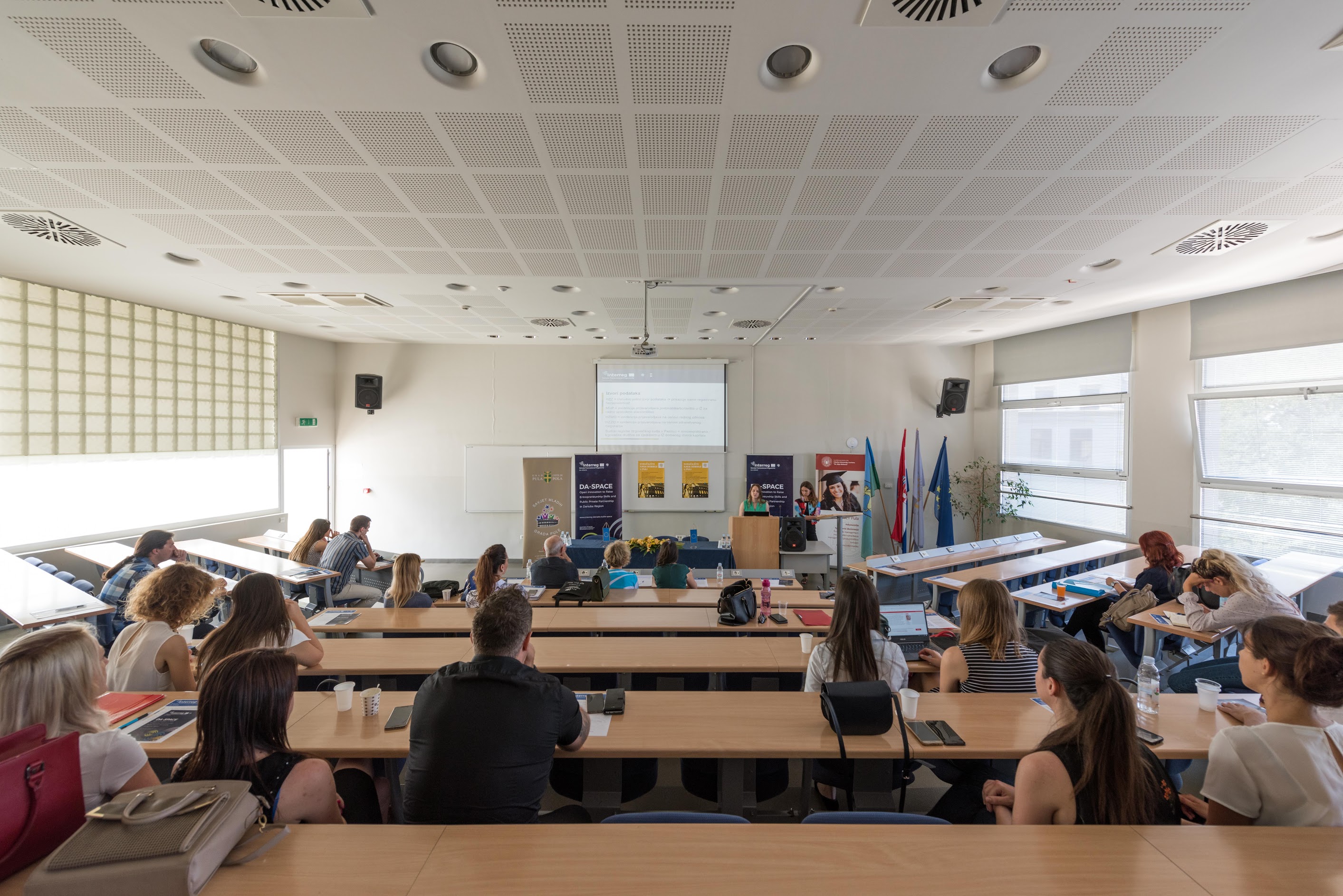 U petak, 15. lipnja na Fakultetu ekonomije i turizma „Dr. Mijo Mirković“ održan je Local Demo Day, završni sastanak sudionika prvog ciklusa DA-SPACE Otvorenog inovacijskog laboratorija uspostavljenog na Sveučilištu Jurja Dobrile u Puli uz potporu Upravnog odjela za gospodarstvo Istarske županije u sklopu projekta DA-SPACE – Open Innovation to Raise Entrepreneurship Skills and Public Private Partnership in Danube Region, Interreg Danube Transnational Programme. Sudionici su bili projektni timovi Sveučilišta Jurja Dobrile u Puli i Upravnog odjela za gospodarstvo Istarske županije, tražitelji rješenja i mladi talenti. Tom prilikom predstavljeni su rezultati i rješenja nakon petomjesečnog timskog rada studenata, ko-kreacijskih procesa uz inovativne metode učenja te program poduzetničke edukacije. Na strani tražitelja rješenja, u prvom ciklusu sudjelovali su Eurokonzalting, Grad Buzet, Infobip, IRENA, Uniline, Maistra te Istarska županija, koji su mentorirali timove mladih talenata.