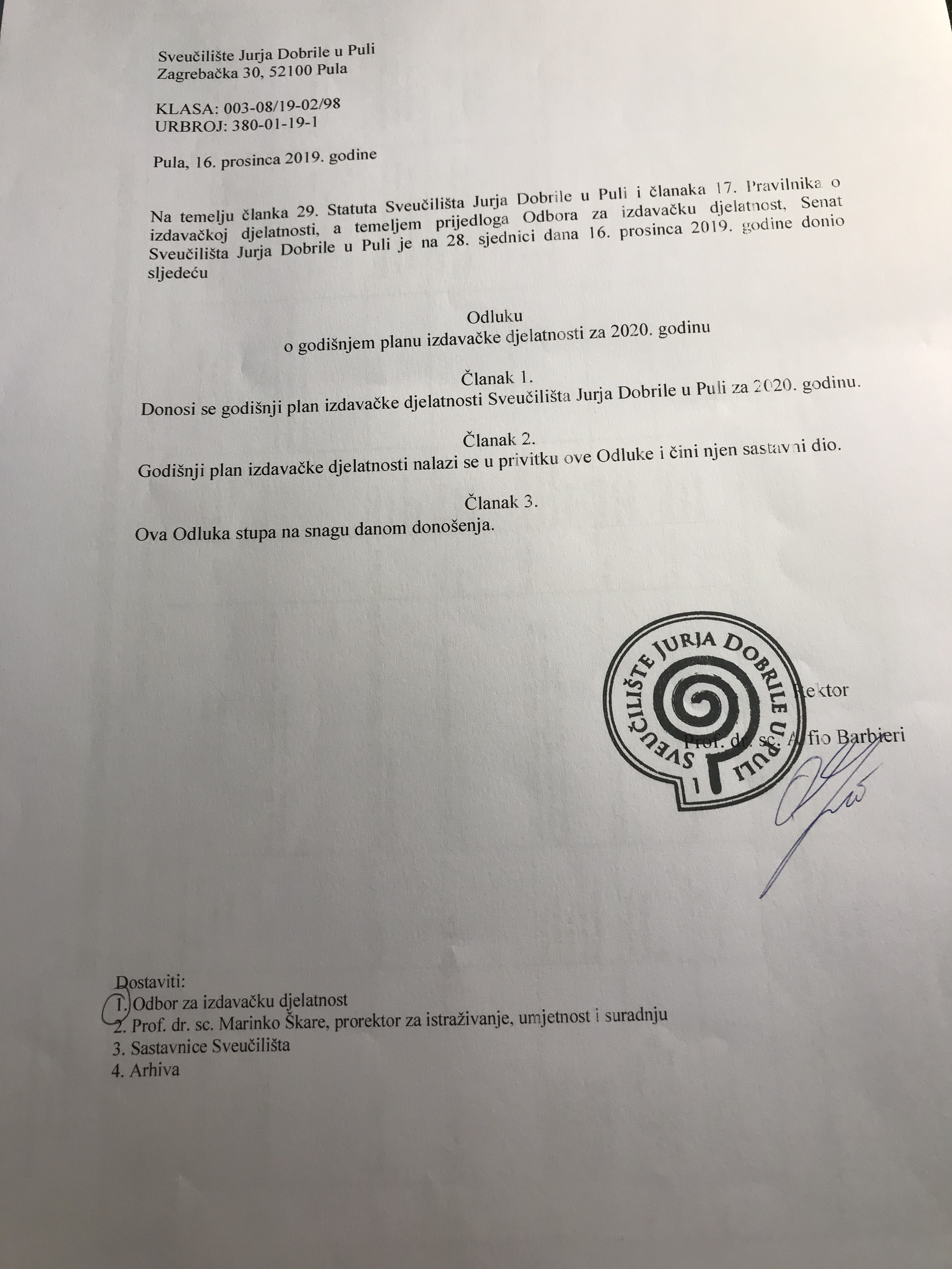 Senat odlučuje o izdavačkoj djelatnosti Sveučilišta Jurja Dobrile u Puli.