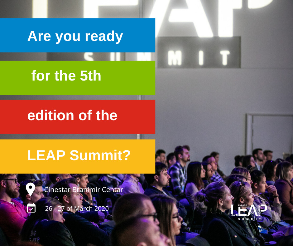 LEAP Summit jedna je od najvećih međunarodnih konferencija za mlade u Europi. U 2020. okupiti će preko 3.000 sudionika iz 40+ zemalja te preko 80 stručnih predavača iz cijelog svijeta. U 2020. godini LEAP obilježava 5. obljetnicu, a održati će se od 26.-27. ožujka u Zagrebu. Fokus konferencije je na multidisciplinarne teme vezane uz poduzetništvo, digitalne tehnologije, održivi razvoj i ekologiju, Europsku uniju, moderne trendove i inovacije te inspirativne priče.