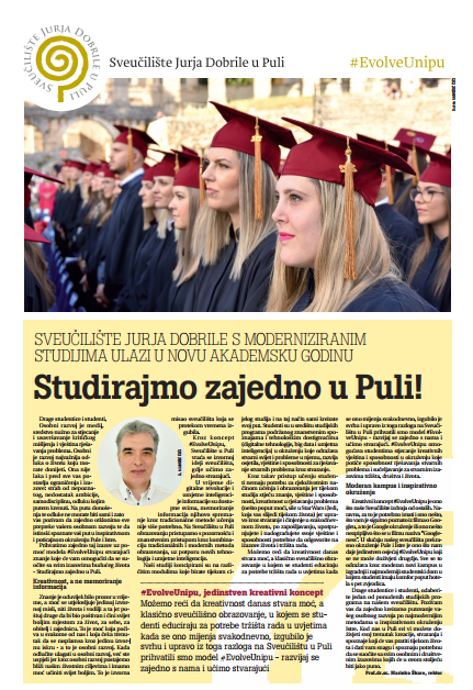 U posebnom prilogu Glasa Istre možete pročitati više o studijskoj ponudi Sveučilišta Jurja Dobrile u Puli kao i o jedinstvenom kreativnom konceptu #EvolveUNIPU.