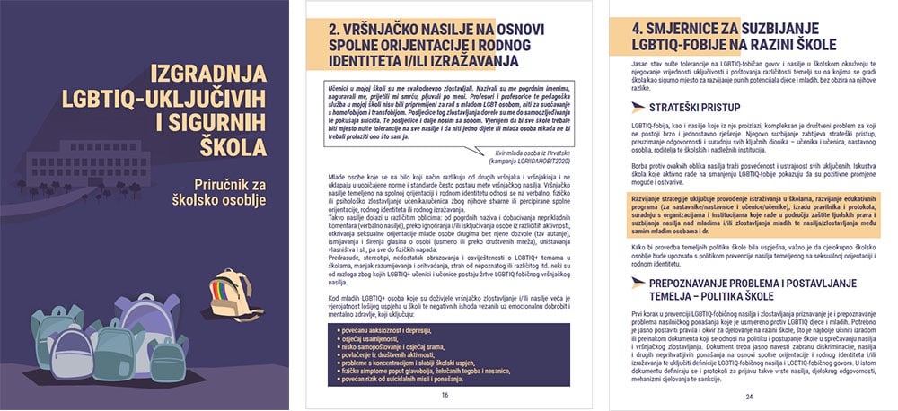 Gornji citat je jedan od razloga zašto je nastao priručnik „Izgradnja LGBTIQ-uključivih i sigurnih školakojeg je izdala Lezbijska organizacija Rijeka „LORI“.