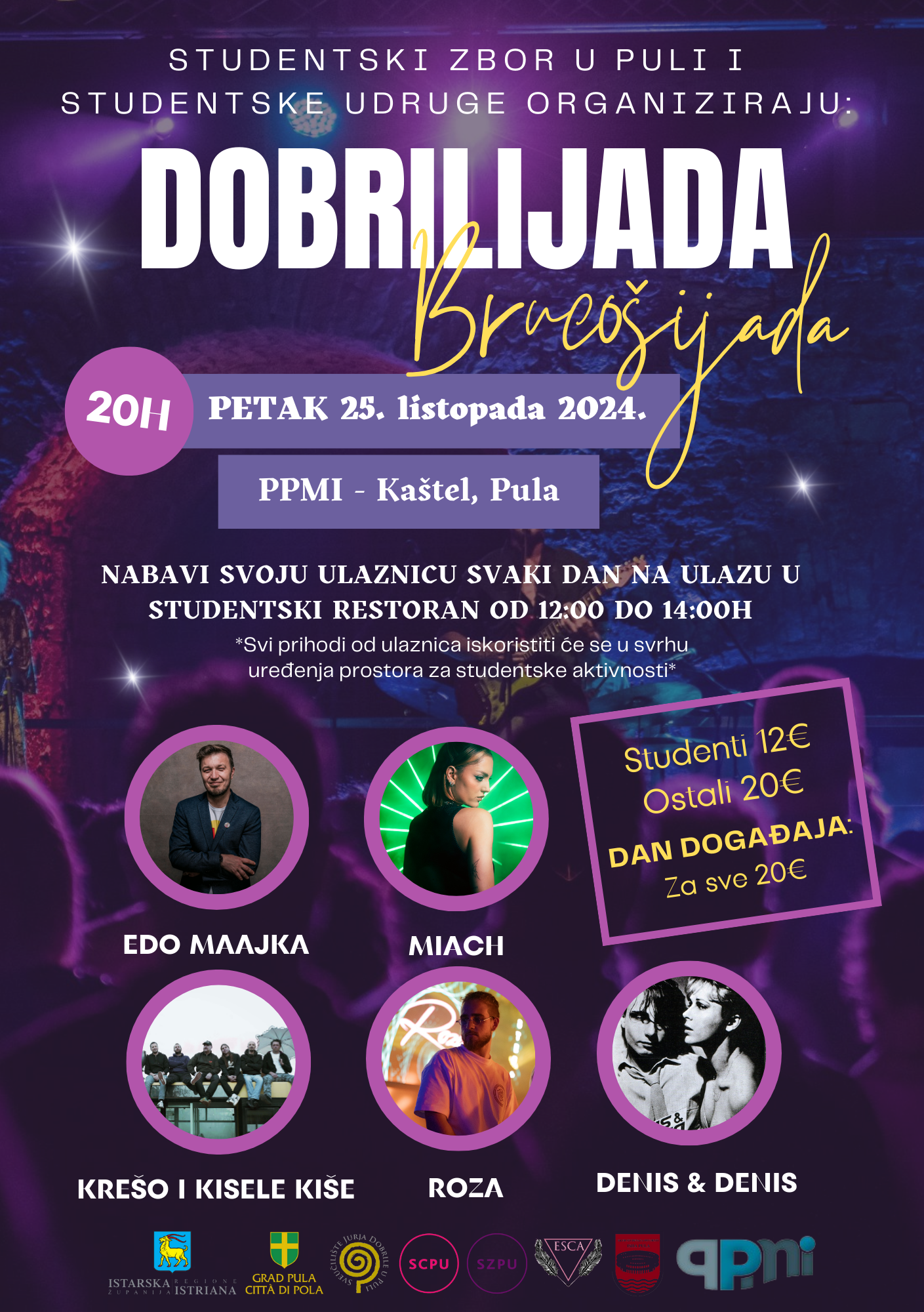 Ulaznice možete nabaviti svaki dan 12-14h ispred Studentskog restorana.